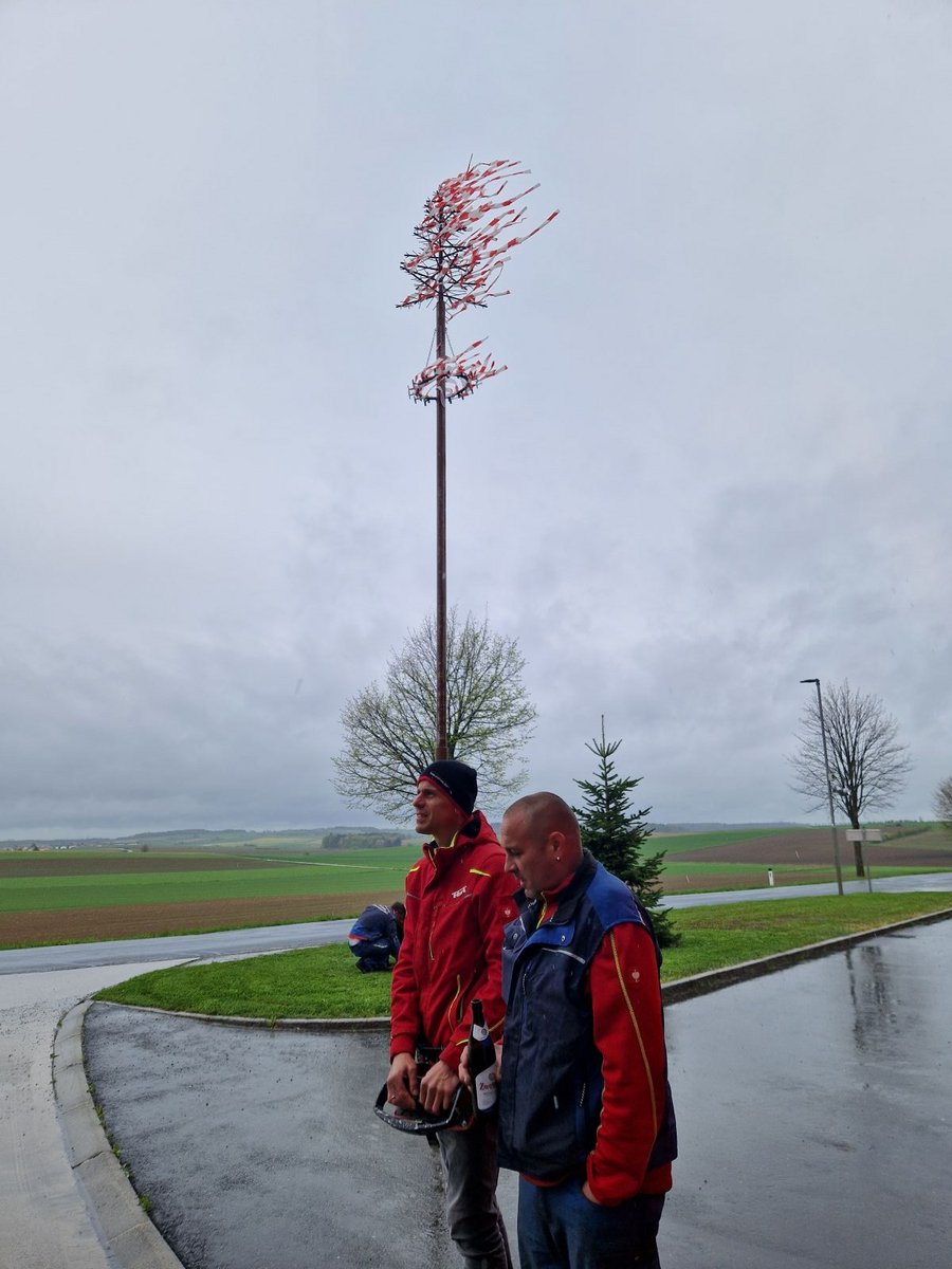 Auch heuer wurde wieder der nachhaltige und ressourcenschonende Maibaum aus Stahl aufgestellt. Anschließend war die Belegschaft zu Würstel und Bier eingeladen.